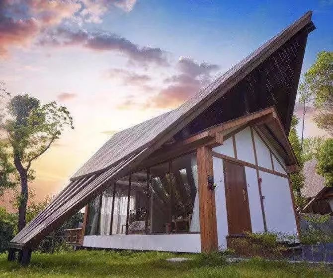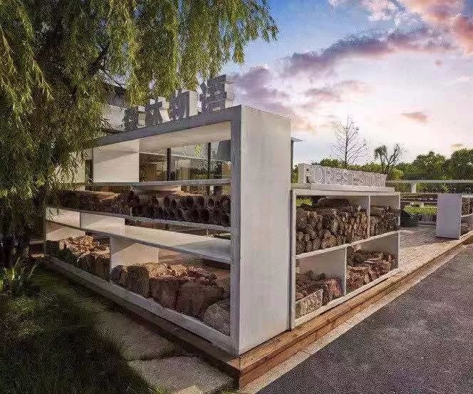 玻璃浴室里,抬头可见参天大树,夜晚躺在浴缸里,头上有漫天繁星。