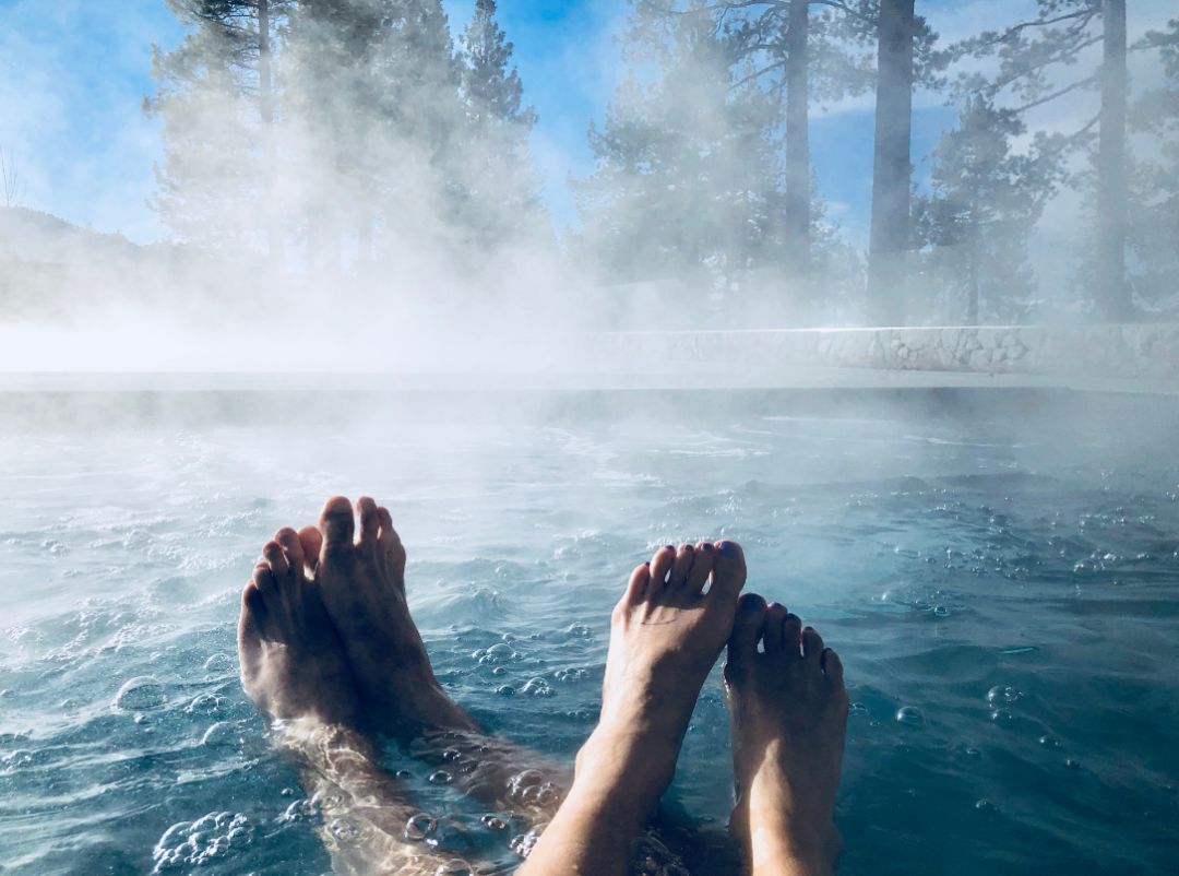 浑身躺进热气腾腾的温泉中,