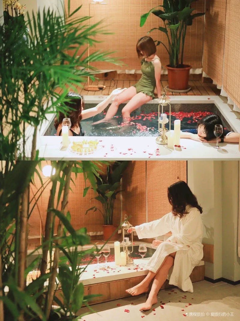 温泉池有樱花泉、月季花泉、茉莉花泉、玫瑰花泉、薰衣草泉、牛奶泉、红酒泉、香薰泉、柠檬泉、鱼疗泉……名字听上去个个都撩动你的少女心~
