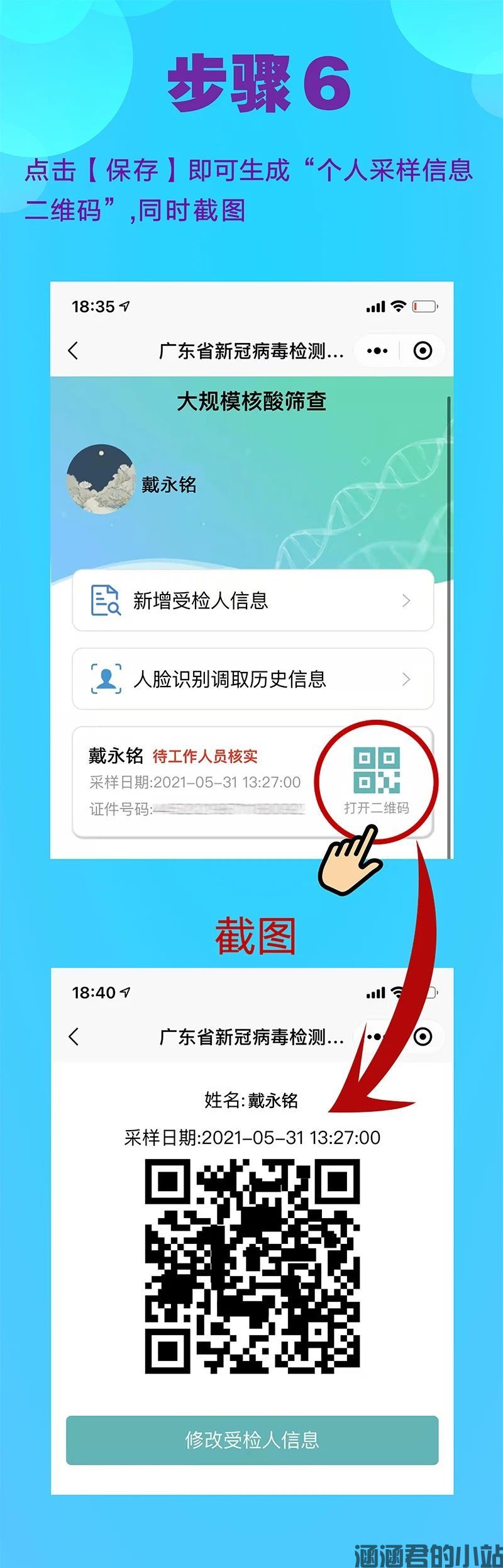 1、可提前在家录入,生成二维码后截图保存,到采样点后可直接将二维码提供登记人员读取信息,减少等候时间。